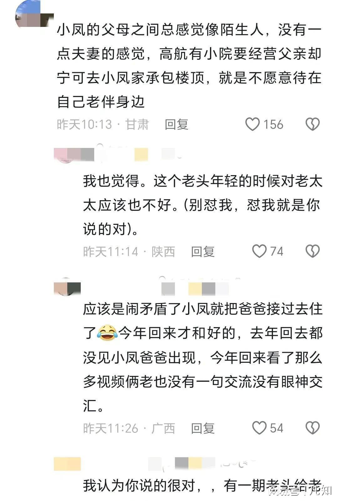 小凤老爹和老妈的关系扑朔迷离,一直让网友觉得很奇怪。