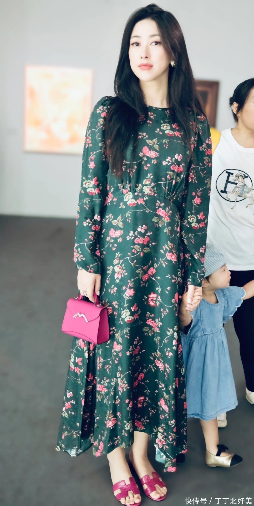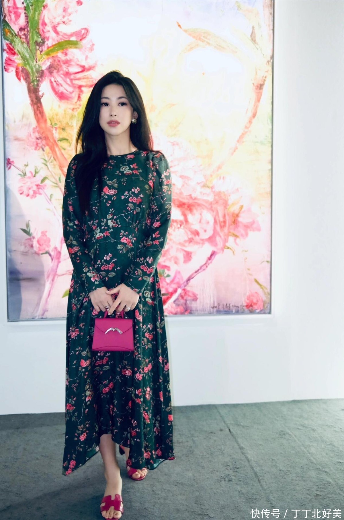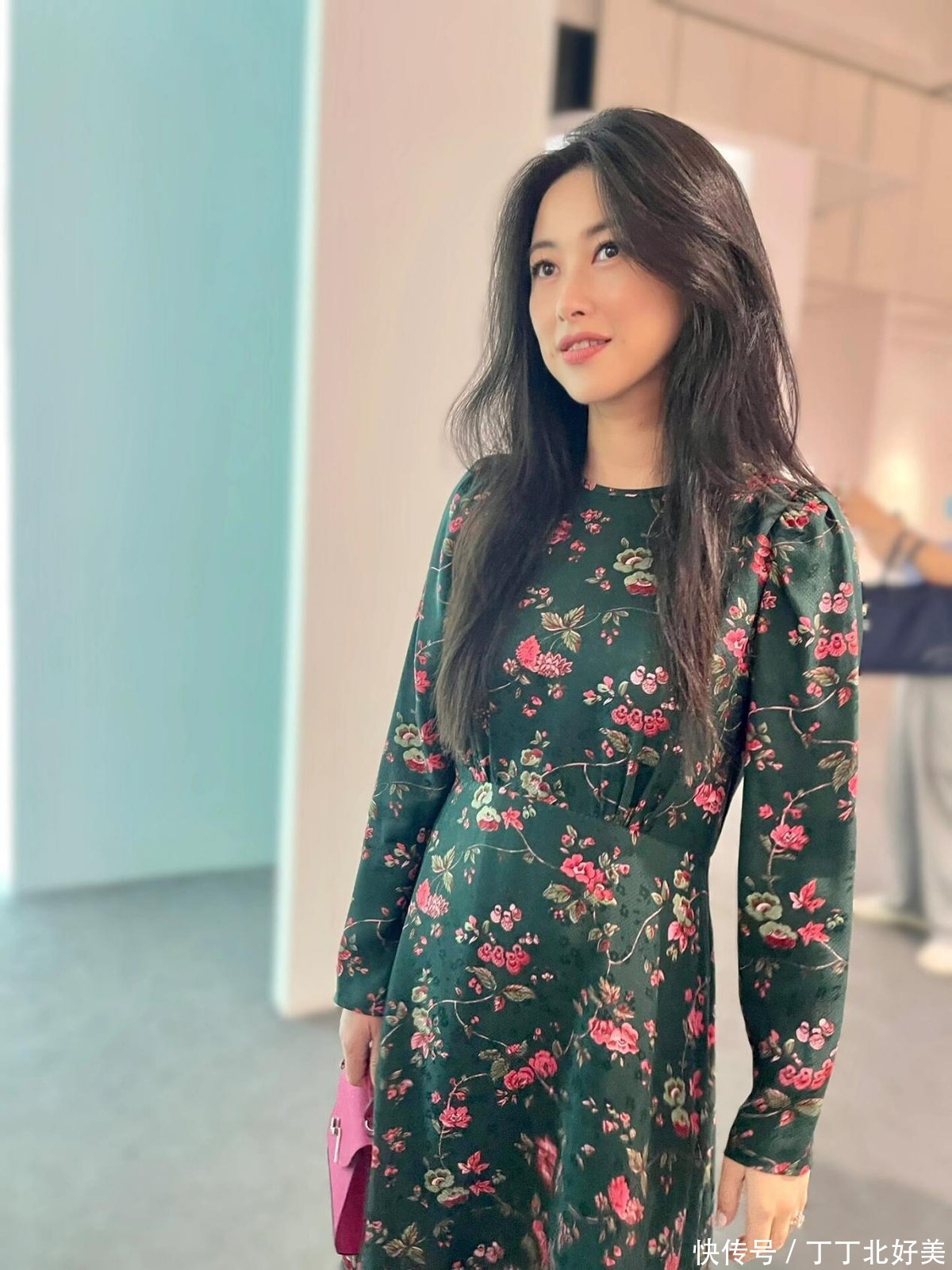 印花连衣裙在很多人的印象当中是一种十分俗气的单品,尤其是很多四五十岁的女性穿印花连衣裙总是会显得很花哨油腻,不过朱珠她的高级感确实无敌,穿着一条绿色的印花连衣裙竟然一点都不俗气。