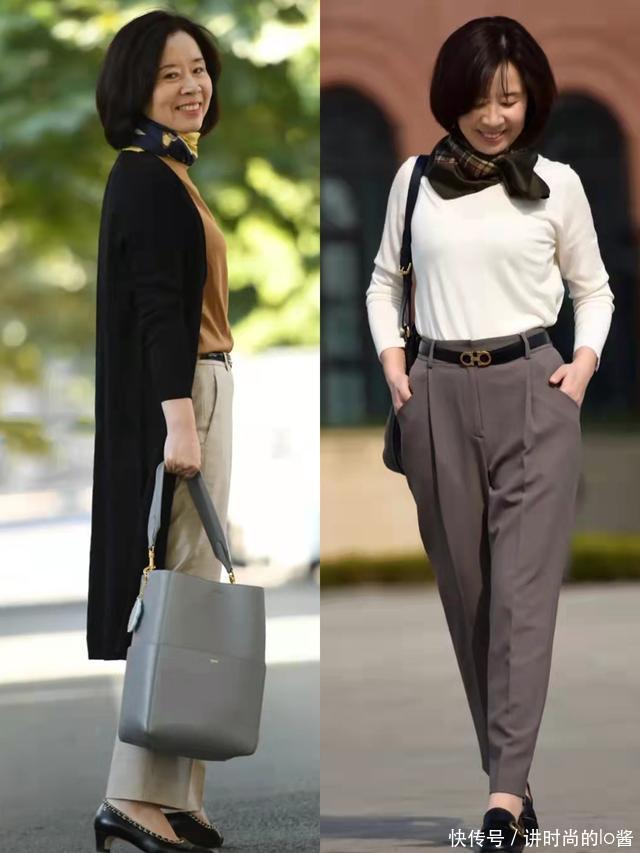讲究细节的"上海阿姨"们重视腰线的设计,她们会在上衣和下装的搭配上添加“皮质腰带”。不仅收紧并提高腰线,打出视觉收缩效果,同时腰带的点缀也增添了整套服饰的档次感。