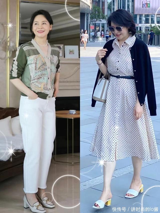 当然,并非每个场合都只需细高跟,生活中更多的是休闲时刻。“上海阿姨”会选择舒适稳固的粗跟鞋来进行搭配,如乐福鞋或奶奶鞋等。这类鞋款舒适又不失气质,满足日常穿搭之余,还展现出别样的优雅。