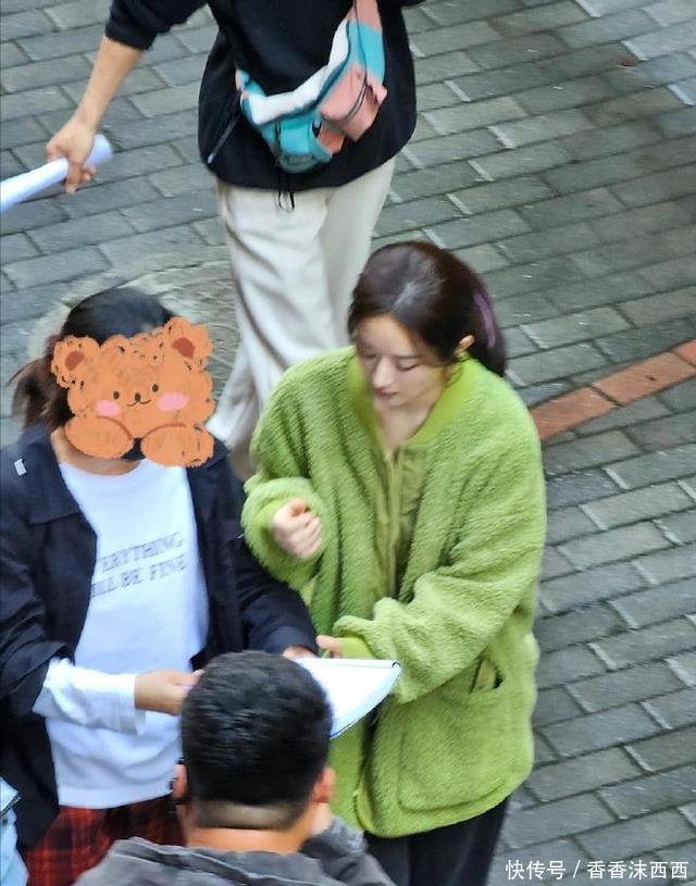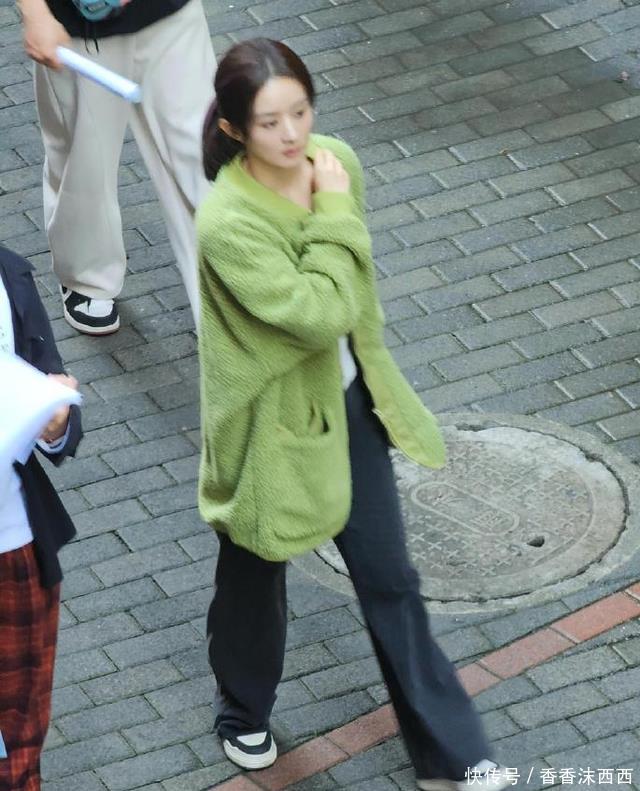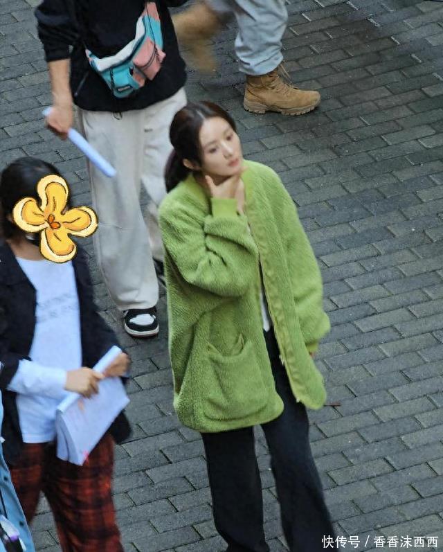 赵丽颖真的越来越美了!最近在剧组忙着拍剧的她,被网友拍到了!一身绿色的无领毛绒外套,搭配了黑色牛仔喇叭裤,皮肤白皙,给人神清气爽的感觉!