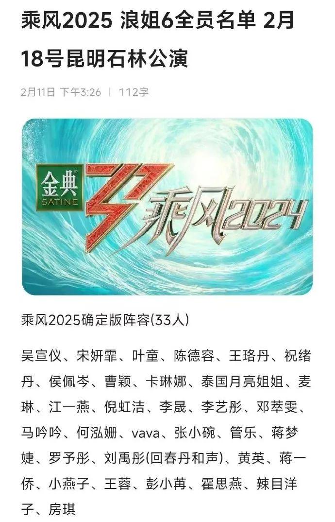 《浪姐6》正在录制中。