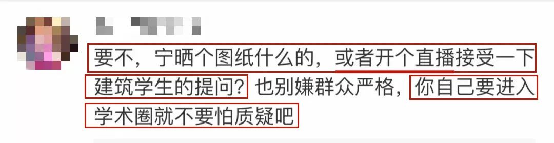 要么对专业问题进行回应,用真正的建筑学实力证明自己的实力;要么就诚恳地道歉,还设计师一份应得的尊重与荣誉。
