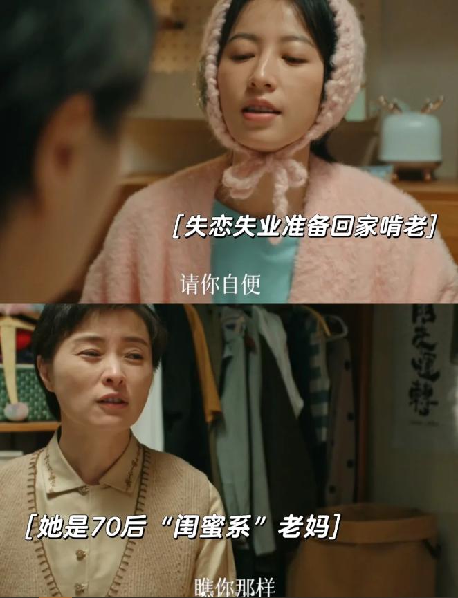 母女俩隔着门你来我往的对话,既搞笑又温馨,让人忍俊不禁的同时又感受到了浓浓的烟火气。