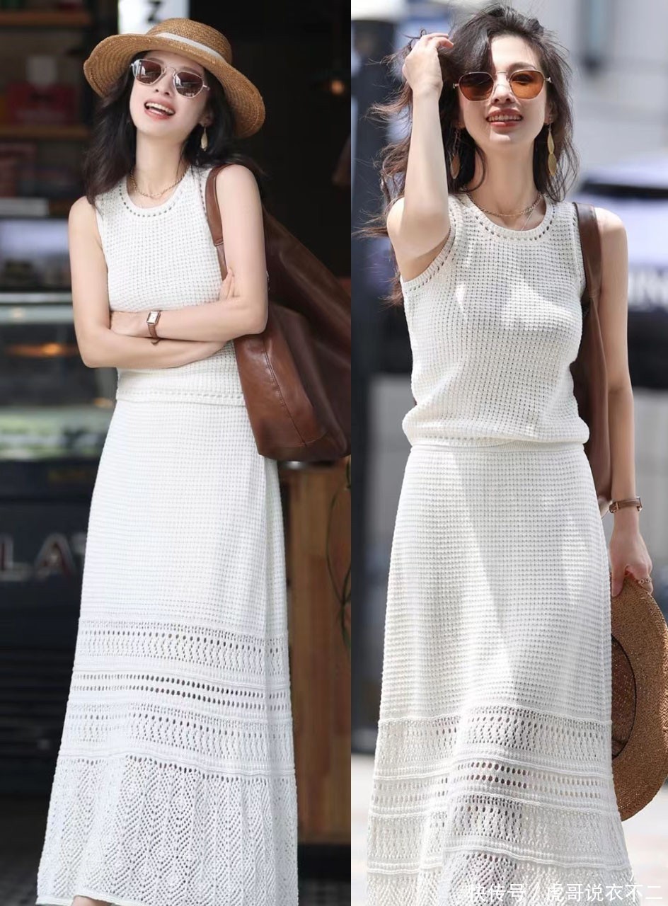 因此在日常的穿搭中,大龄女士不妨也多运用一些白色上装或是白色连身装,图中这位博主就展示了all white的造型,在穿搭中着重利用白色,从而使清新优雅的气息,充沛的萦绕在了自身周围。