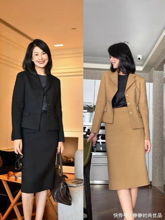 你们可以选西装套装,像这样简单的服装穿上身给人的感觉也很潇洒大气,比如说棕色的西装套装或者是黑色的套装穿在身上都显得非常的有气场,颜色经典耐看,而且上班通勤的时候去穿也没有违和感。