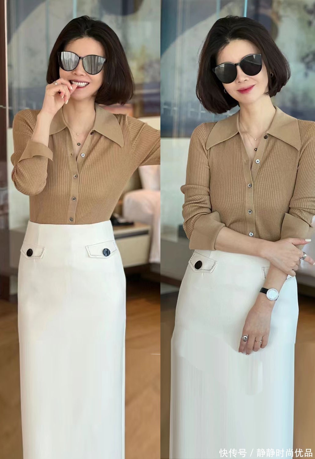很多上了年纪的女人,日常都是很喜欢采用白色上装的,毕竟距离脸部要更近,可以使白色承担起打光效果,将脸部的纹路进行适当的抹平。