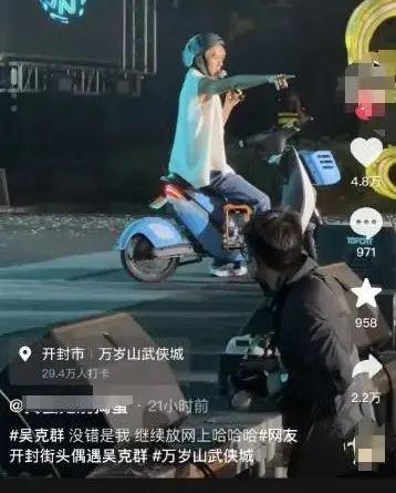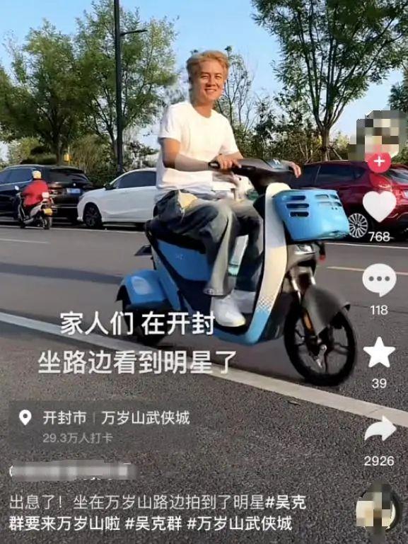 2024年9月,歌手在河南开封演出,有粉丝在街头偶遇了骑着电瓶车的他。结果视频中的吴克群骑电瓶车没有戴头盔,被网友立马指了出来。