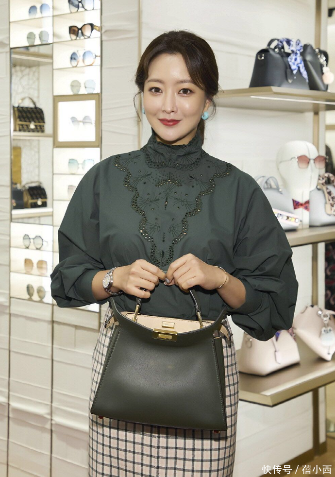 金喜善身着一件墨绿色上衣,搭配一条格子包臀长裙,展现出曼妙的身材曲线。这款墨绿色衬衫的设计独具匠心,不仅色彩浓郁,更凸显出金喜善的优雅气质。同时,长裙的格子图案也为整体造型增添了几分复古韵味。金喜善身材凹凸有致,尤其是穿上这款上衣后,更显得玲珑剔透,肩膀与颈部的线条流畅优美,腰部线条紧致,借助宽松衬衫的搭配轻轻松松彰显出女性的柔美与魅力。