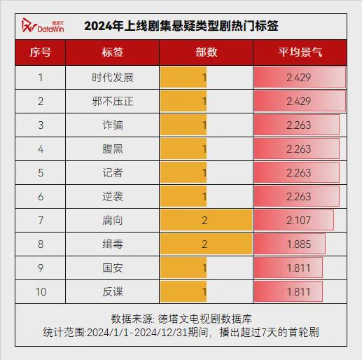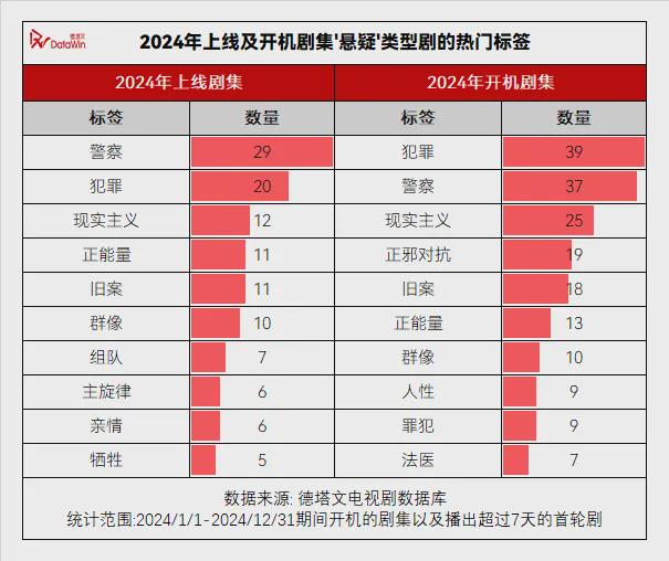 但也须警惕的是,“犯罪”“罪犯”相关标签大幅提升,说明悬疑剧以反派视角增加内容丰富性正当红,但也正变得不够出奇。不能忘记的是,悬疑剧要破圈必求新意。