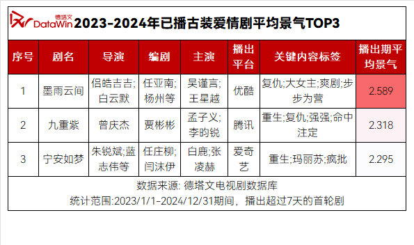 古装剧:传奇赛道最常青,纯爱情赛道吸引力弱化。