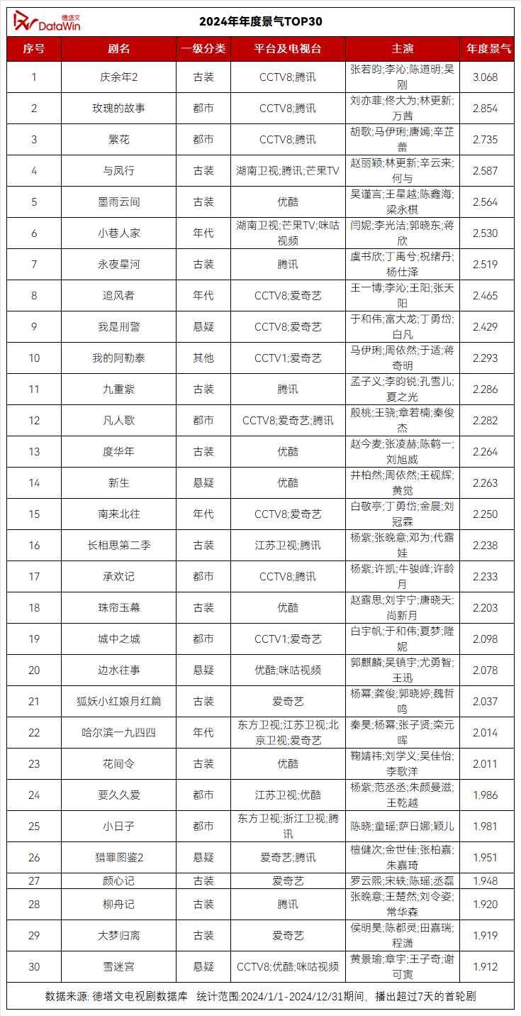 2024年最热门的剧集,体现出过去一年中市场最有效的配方特点,其中部分在2025年将持续发挥作用: