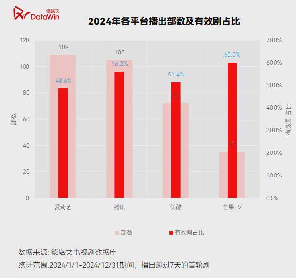 在重复计算联播剧的前提下,2024年各平台有效播剧率先后排序为: