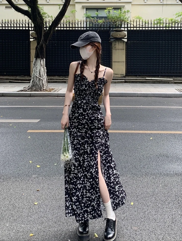 吊带碎花连衣裙也是一个很不错的选择,00后的小美女们就可以像下面这位博主的穿搭示范一样,一款黑白印花的碎花连衣裙,吊带的设计能很好的展现出锁骨和手臂线条感,更加的迷人。