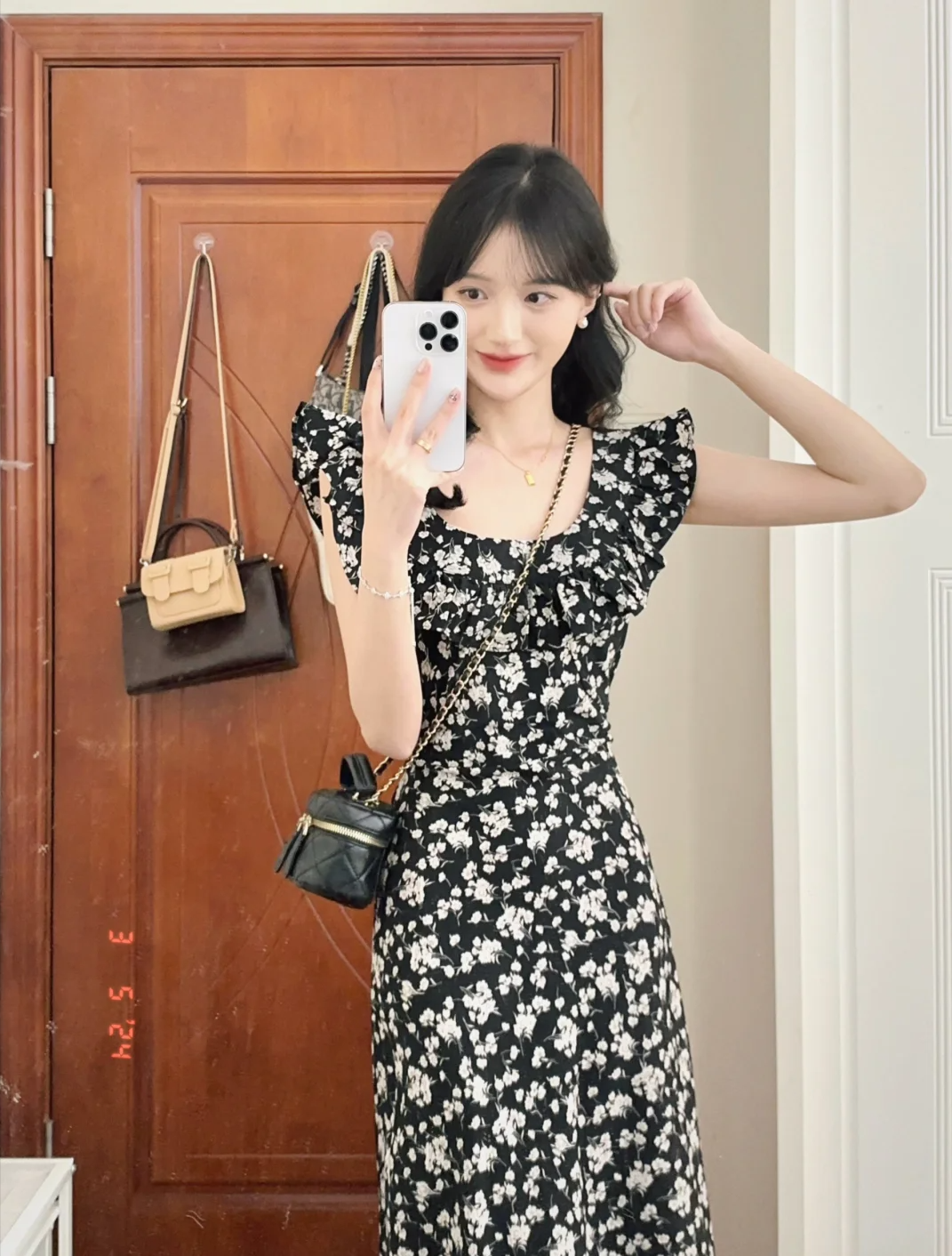 我们也可以选择荷叶边设计的碎花连衣裙,这样看起来会更加人温柔,高腰收腰的设计看提升腰线比例,也能更好的展现出你的蚂蚁腰,更加的抢眼又抢镜,挂上一款黑色链条时尚小包包,会让你变得更加的精致好看,如果你也喜欢这些博主穿搭示范,不妨试一下,你也可以变得更加漂亮,你说呢?