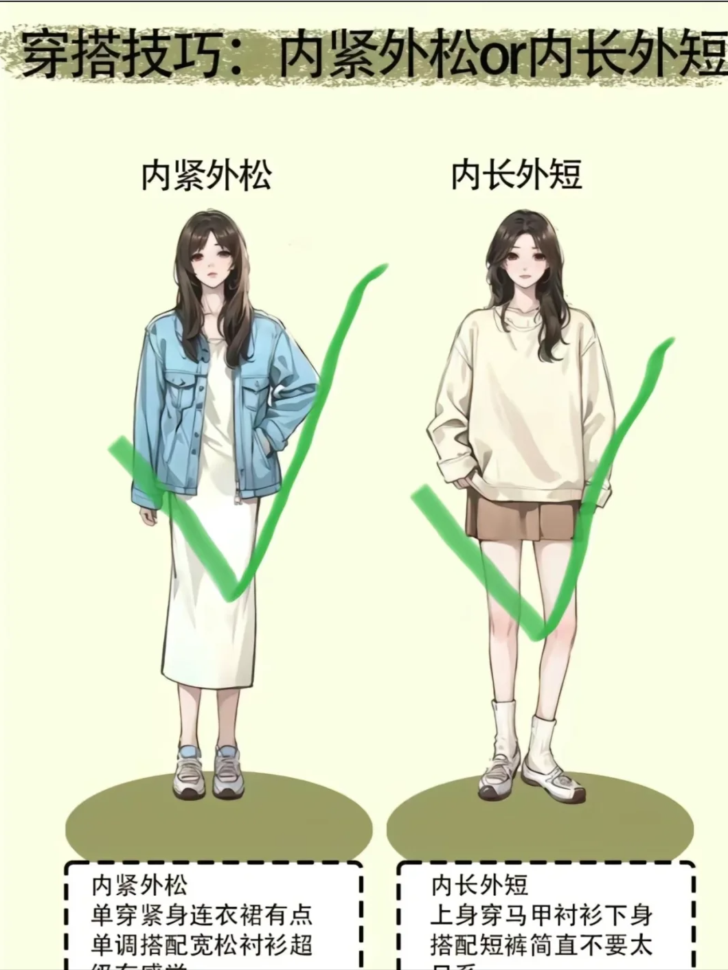 看下面这两张对比图就知道了,如果你采用的是上紧下紧的穿搭,咱们身材的缺点暴露无遗。