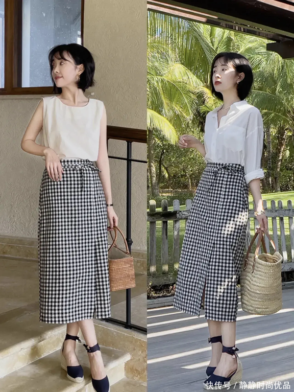 衬衫和半身裙的搭配也是相当优雅的,这样的造型其实并不挑年龄,如果你已经到了40岁甚至50岁,你仍然可以尝试这种穿搭,选择一件短衬衫配高腰的半身裙,将衬衫塞进裙子腰中,突出腰线,这样的装扮会使我们的身材得到调整。