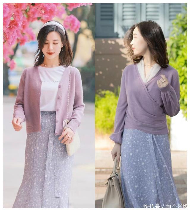 温暖的时节其实是特别适合尝试裙装的而且这种单品也有着多种搭配方式可供照搬。可以先采取针织衫和裙子的结合淡雅又温柔。