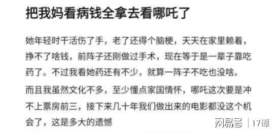 尤其看到这样的消息,饺子不知道会不会元神出窍:一个网友把他妈看病的钱,全拿去看哪吒了!