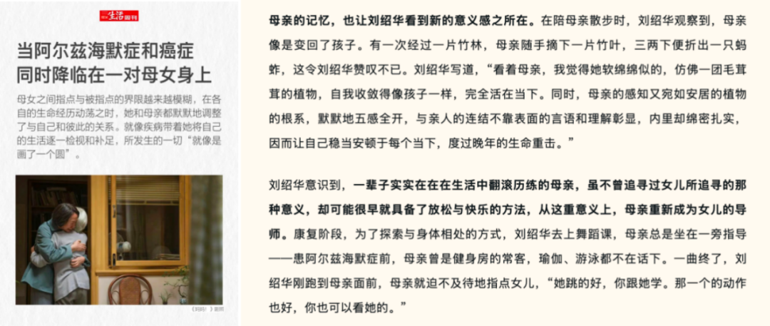 (三联生活周刊《当阿尔兹海默症和癌症同时降临在一对母女身上》)