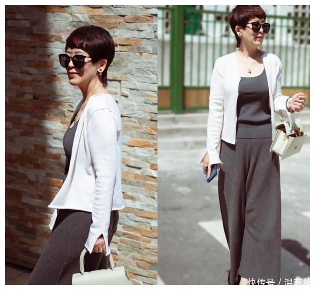 我们在具体挑选无龄感单品的时候,首先要学会避开设计过于繁琐的款式,优先选择基础款,不容易出错还特别百搭耐看。比如基础色的针织开衫,采用修身的款式,作为外套叠穿吊带,不仅可以衬托温柔的气质,还特别显身材。