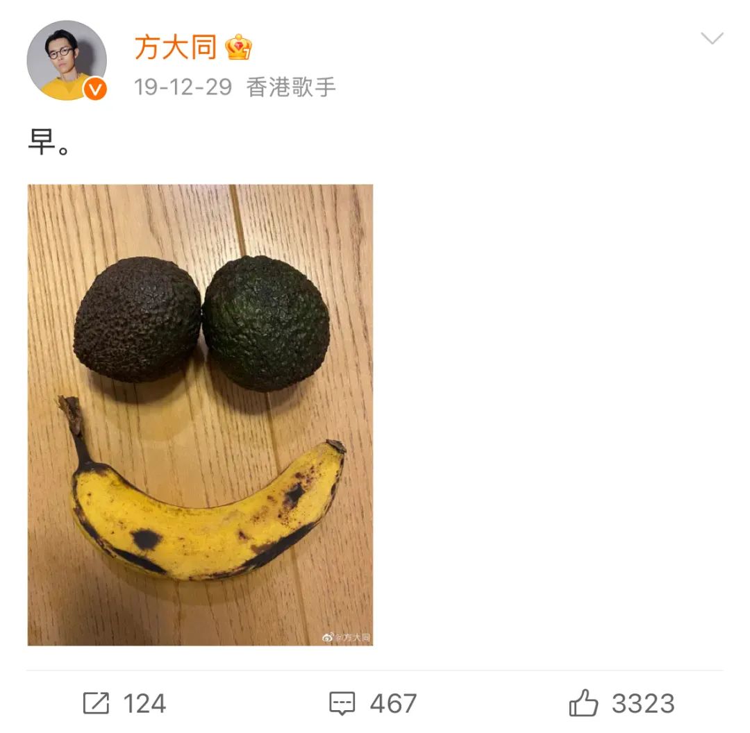 他的微博里,蔬菜是可爱的,香蕉和牛油果是会向人问好的;