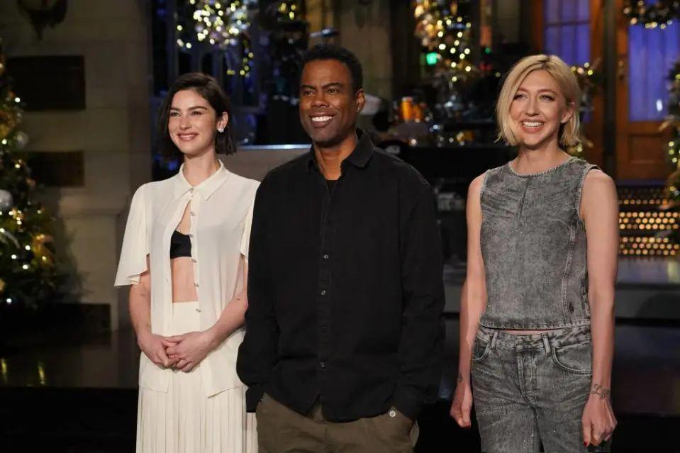 还是在曼哈顿第五大道 Chanel 旗舰店的开业典礼上,那套 Chanel 2024 春夏系列的黑白丝绸上衣,搭配黑色不透明长袜和露趾高跟鞋的造型,去巧妙融合了复古与俏皮。