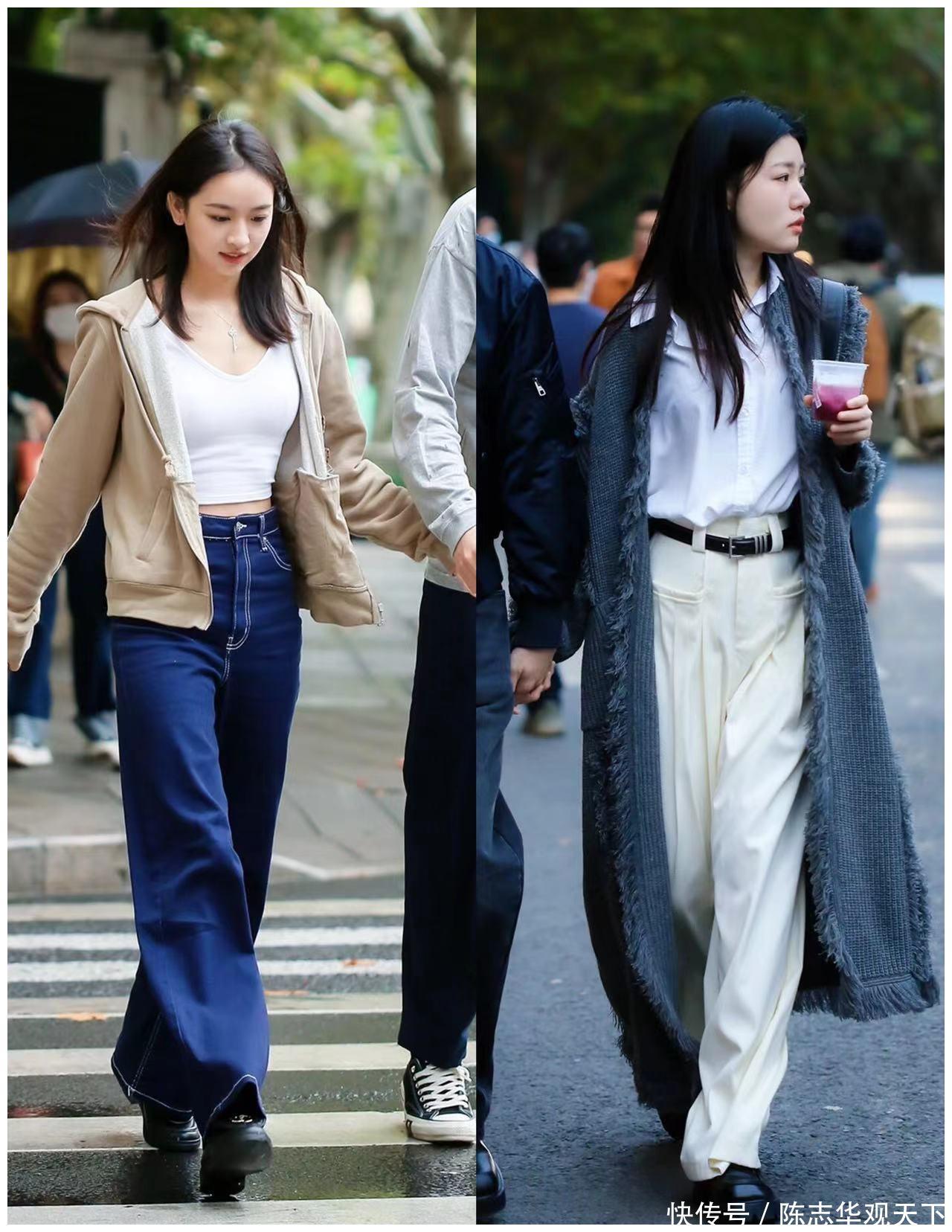 小个子女生可以选择版型不会过分肥大的阔腿裤,像这种腰部宽松而裤脚逐渐内收的阔腿裤会更加利落不拖沓。裤子的长度也以能够露出一小截脚踝为佳,不会压身高。鞋子避免太过笨重的老爹运动鞋,搭配轻便的白色板鞋更好看。