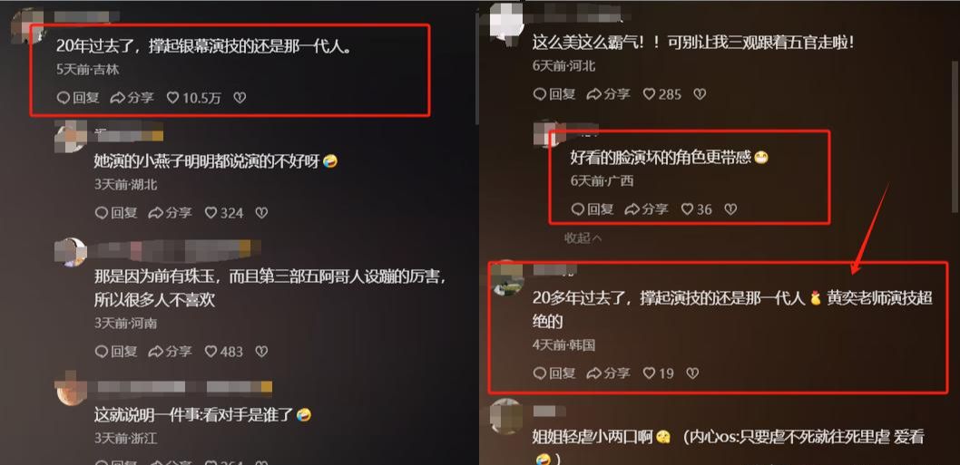 一针见血的观众表示:“20多年过去了,撑起演技的还是那一代人,黄奕演技超绝。”