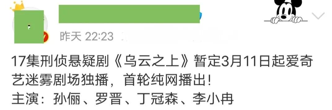 如今的剧集市场刑侦悬疑剧稀缺,这部《乌云之上》即将定档开播,自然会受到更多的关注。