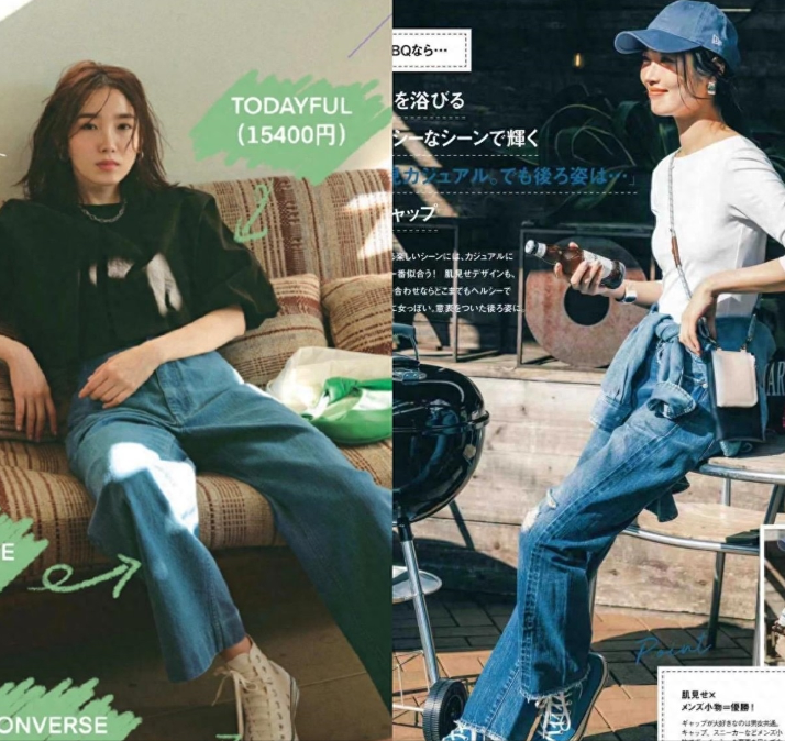 中年日本主妇们通常会选择一些简单的牛仔裤,搭配一双白色的帆布鞋,这样看起来非常清爽、干净。