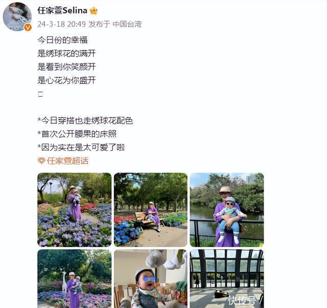 18日晚,Selina就在社交平台分享出带着6个月大的儿子腰果逛公园画面,她还开心附文称:“今日份的幸福,是绣球花的满开,是看到你笑颜开,是心花为你开。首次公开腰果的床照,因为实在是太可爱了”,欢快的文字中透着满满母爱,幸福满溢。