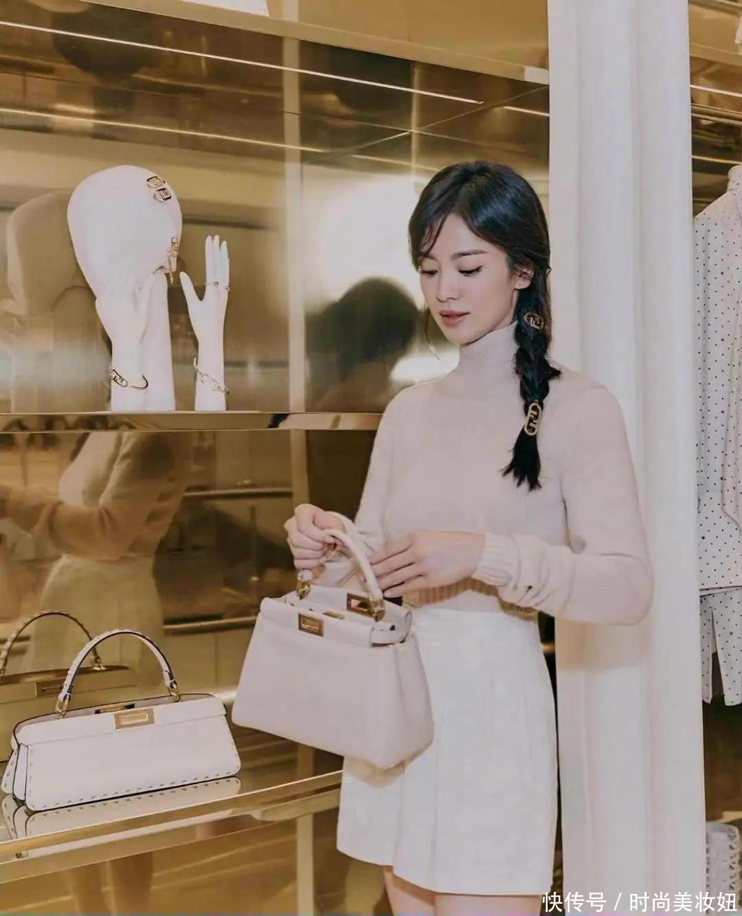 宋慧乔不仅演技是备受瞩目的,她的私服穿搭更是受到很多年轻人的青睐。宋慧乔又带火了一种新穿法:针织衫+A字裤+麻花辫,减龄洋气。这身造型不仅把她的优点完美展现出来,发型更是加分项,足足年轻了10岁不止。