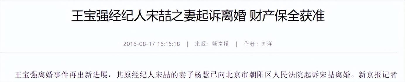 中国法院网:王宝强经纪人宋喆之妻起诉离婚 财产保全获准