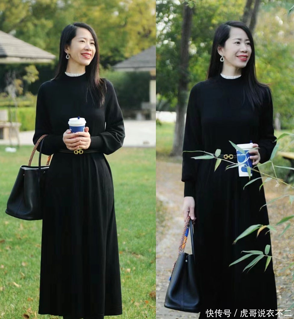 黑色虽然是最为常见的基础色,但却有着怎么也让人穿不腻的时尚魔力,高级又显气质,像图中这样一件黑色长袖连衣裙,就很能展现出女性气质的大方优雅,构造出很显风度的一面。