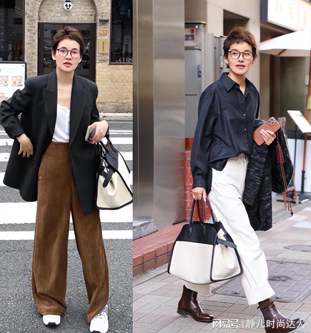 当气温逐渐的上升,来到春天,我们可以尝试一些经典的宽松西装或者是衬衫搭配阔腿裤,这些宽松型的服饰对身材具有很好的包容性,颜色上也可以根据这些时尚博主的穿搭选择经典的黑白色系以及经典的大地色,看上去非常的高级。