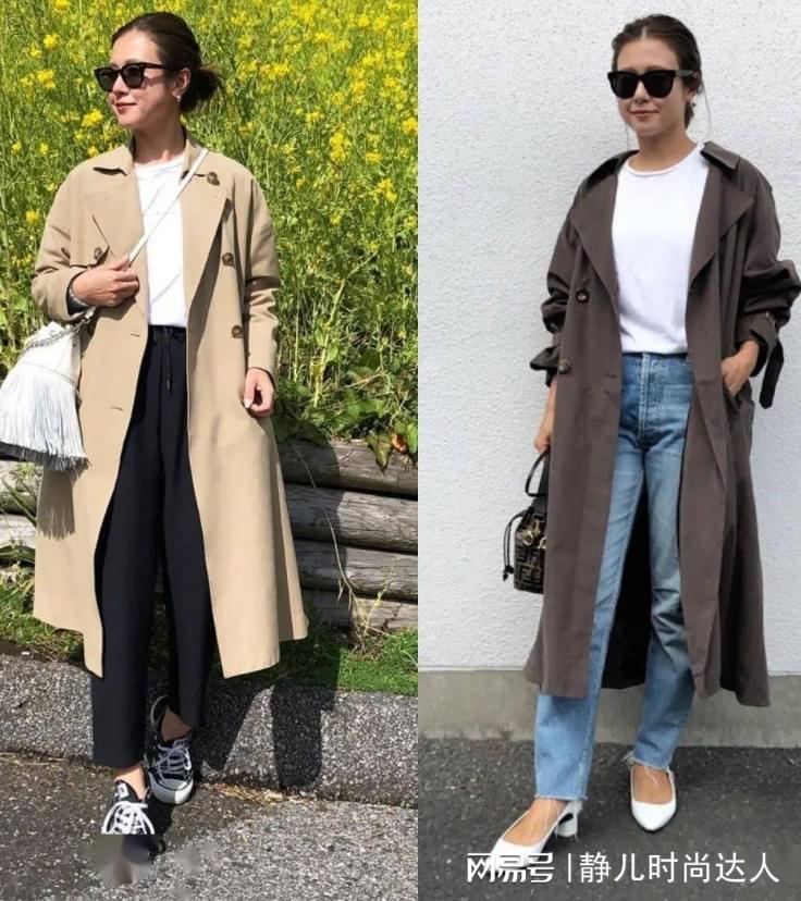 到了春天,风衣单品的出镜率变高了,你可以选择一件中长款的风衣,穿在身上挺括有型,非常的帅气,搭配高腰的牛仔裤也能够修饰你的大长腿。