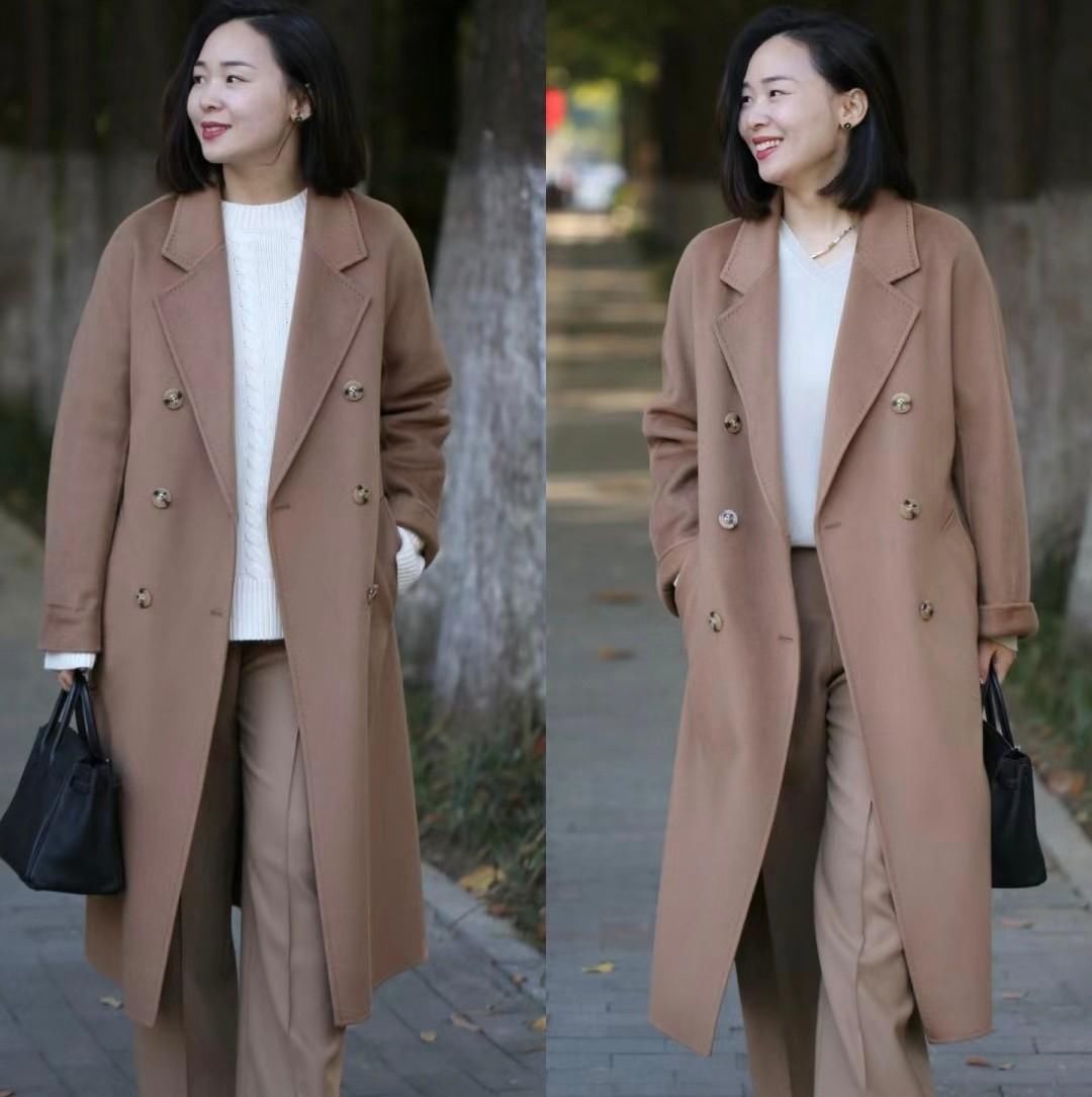 像这件大地色的长款大衣,这种颜色还是比较适合女性采用的,整体的外形塑造没有太亮眼的地方,但是,却可以显得女性愈发的温柔端庄。