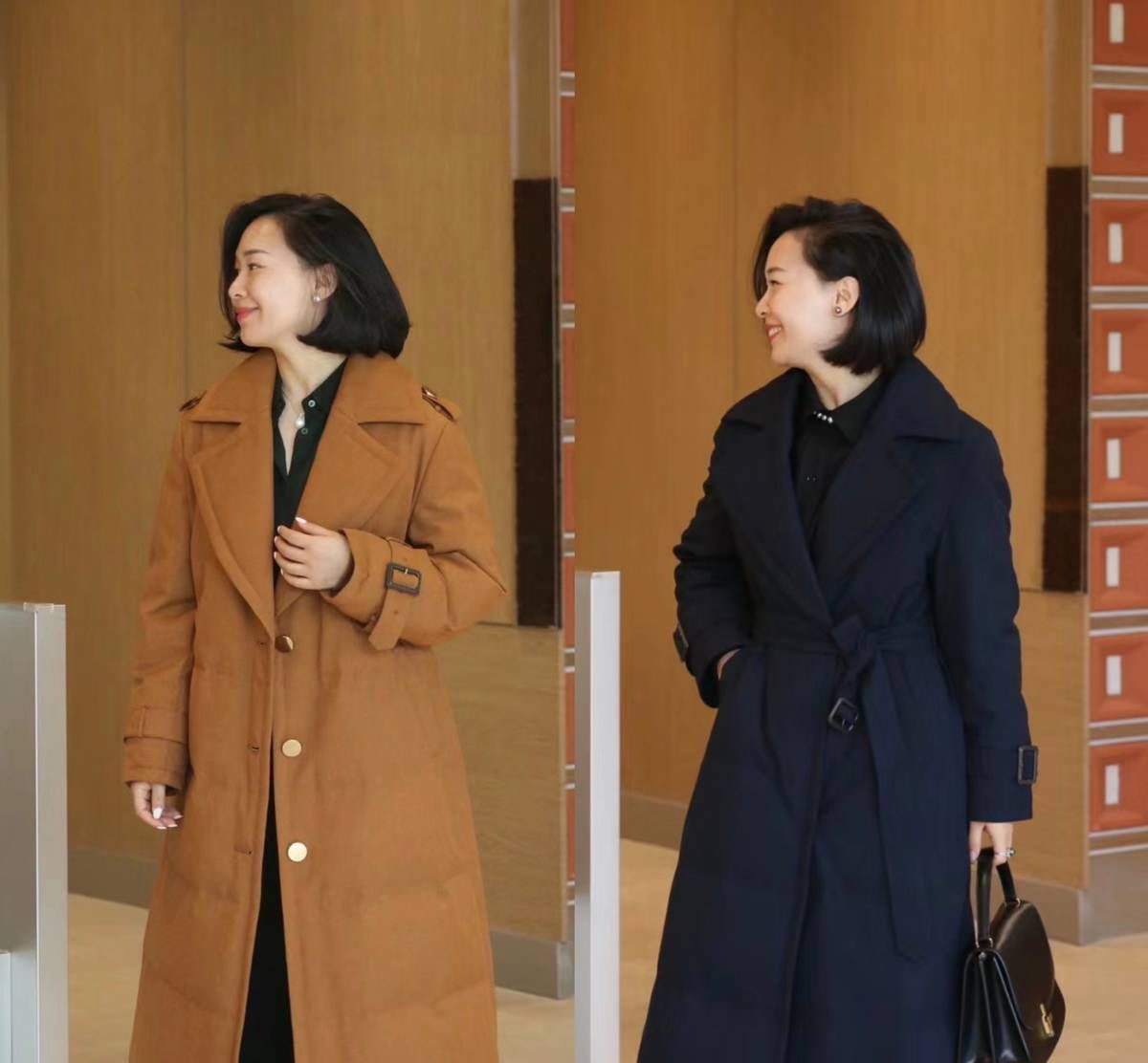 而除了最简洁的黑白色的长款大衣之外,女性也可以在衣柜里加入几件大地色的大衣单品,外形构造不会太过于繁杂花哨,又可以很好的摆脱掉单调感。
