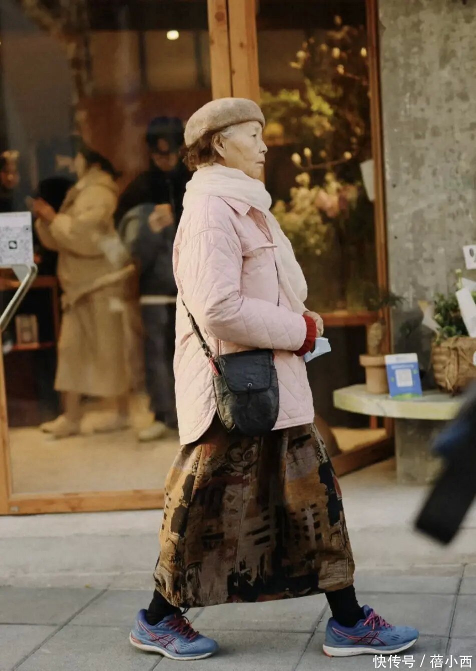 上海奶奶的穿搭在颜色上也会大胆的运用当前的流行色彩,而不只是拘束于在常规的黑灰色系当中,就像这些奶奶们所穿的粉嫩色系棉服也能够瞬间拉回少女时代,看上去稚嫩且清纯,温柔的浅粉色也显得整个人更年轻。