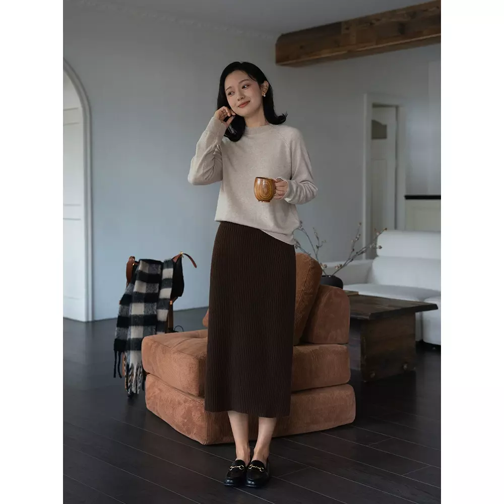 同时,我们可以和裙子进行搭配,大家可以选择这一件秋冬简约羊毛针织半身裙,它更加的百搭,而且又保暖舒适,这一条裙子分别有两个颜色,深棕色,时尚洋气,搭配上大地色的外套或者是针织衫都很好看,还有黑色,可以随意和各类的大衣外套,或者是小香风外套组合显瘦又百搭。