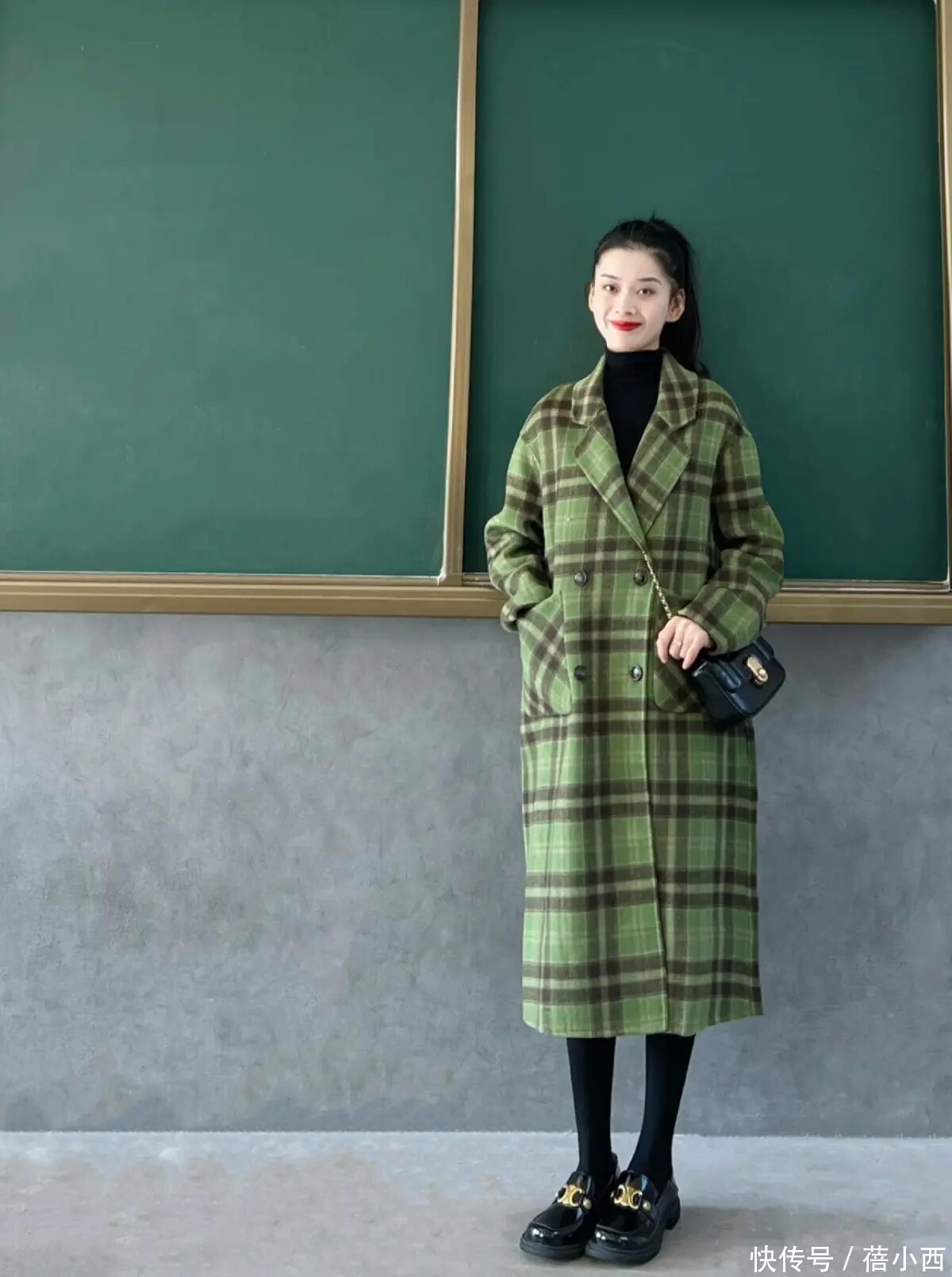 复古的格纹外套流淌流淌的是冬日的复古感,这样一身时髦的格纹外套结合绿色的格子,看上去又比较轻盈靓丽,在沉闷的冬天去穿也能顺势让你脱颖而出,顺便再结合黑色打底裤踩上一双小皮鞋,即便长时间的站立也完全不会觉得不舒服。