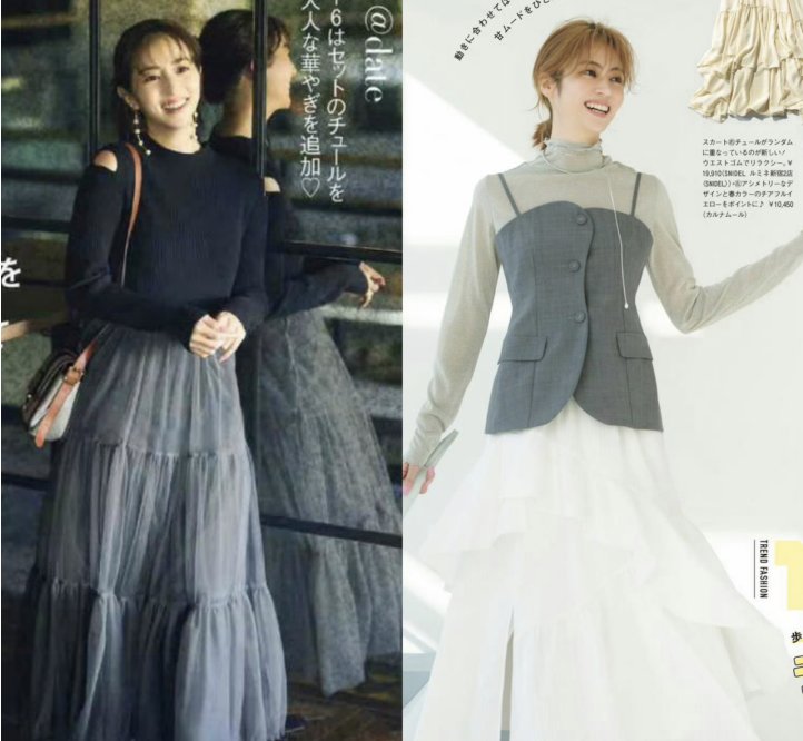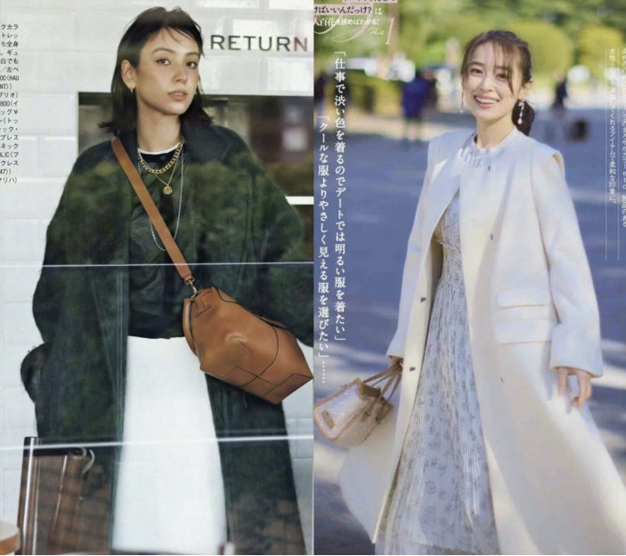 比如这两件大衣,都叠加了裙子,而显现出端庄自持的韵味,可以选择最传统的黑色长款大衣,结合白裙,配色简洁却永不过时。