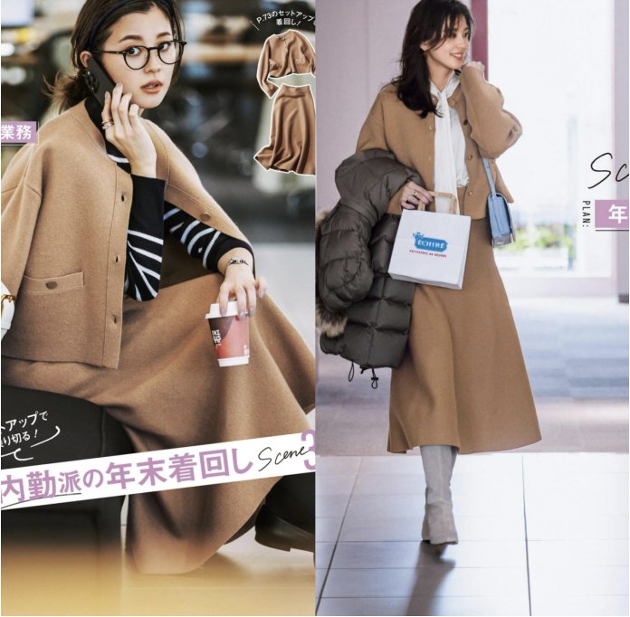 这两件大衣都是偏短的设计,那些骨架小的女性,其实反而更适合尝试这种大衣单品,不会因为衣服过分长或宽而显得不合身。