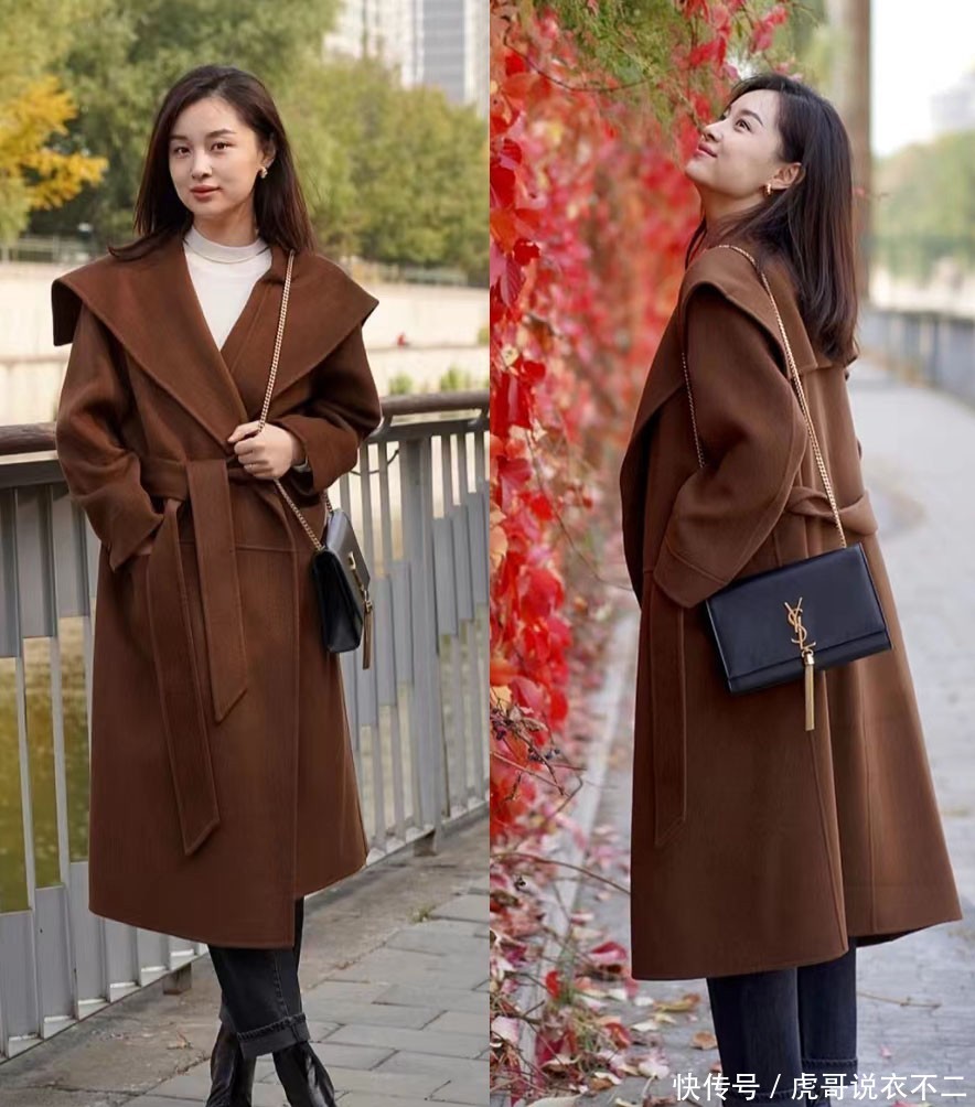 例如上图这件深棕色的大衣,可以将其作为营造氛围感的一种时尚利器,既能映衬出中年时代的大气感,还能带来些许的温暖,构造出复古知性的格调。