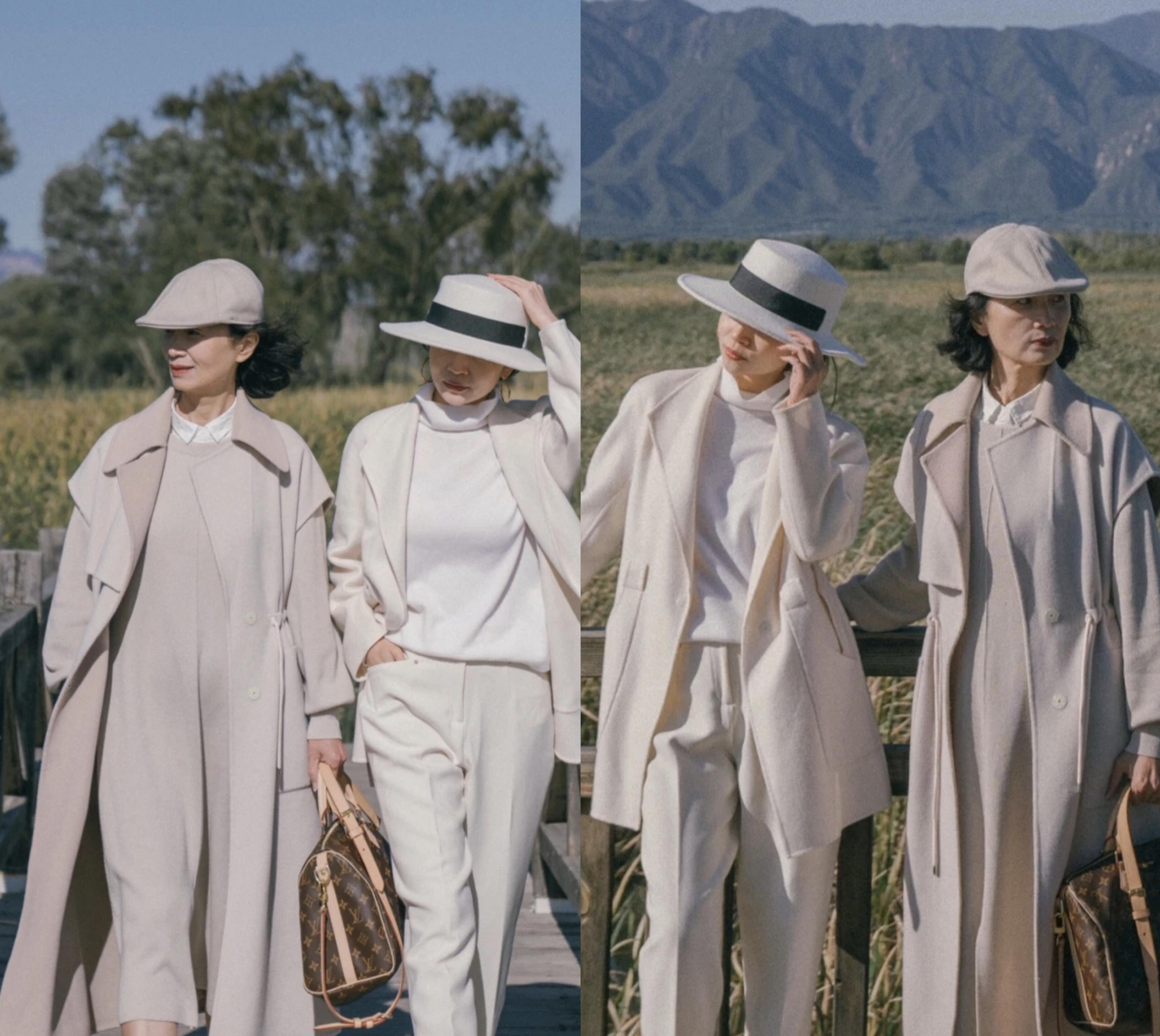 在穿衣上特别讲究的大龄女性,她们就算到了半百的年纪,也不放弃变美,她们还会利用帽子或者是围巾完善造型,增加层次感,营造更好的点缀效果。