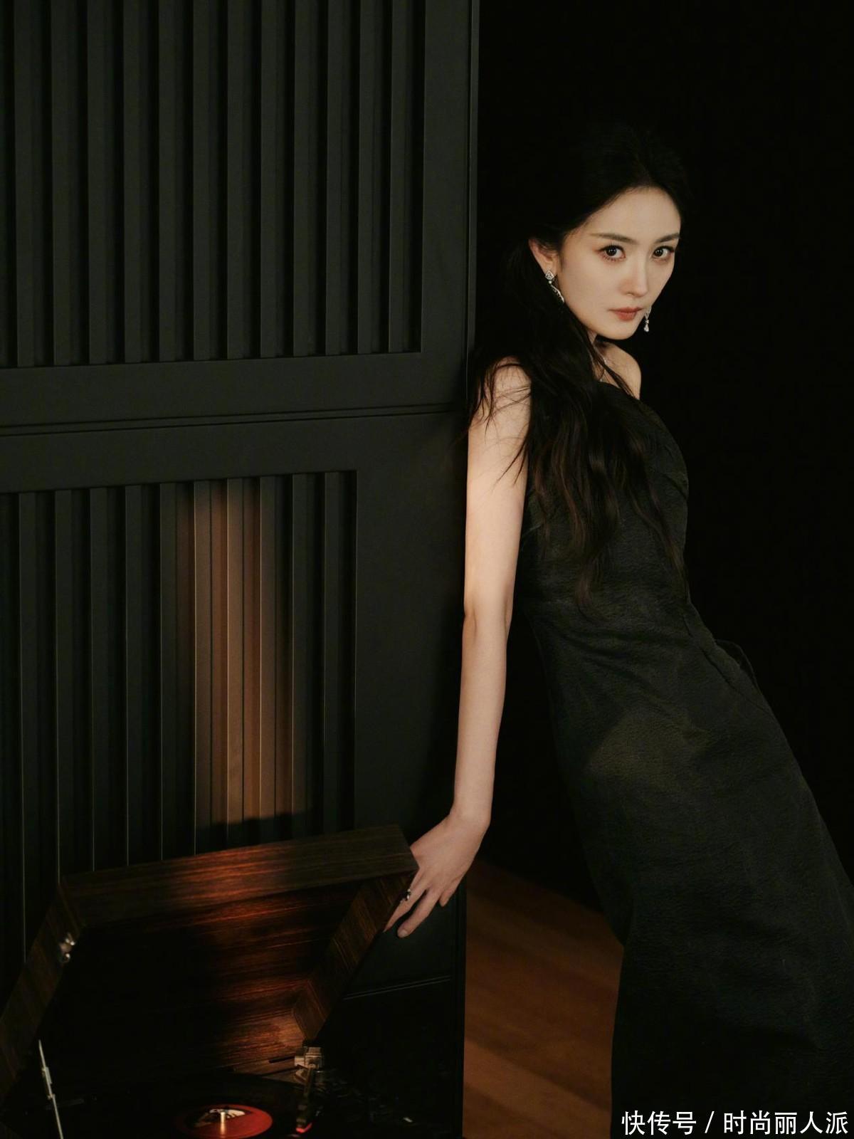 黑色的礼服十分清凉,两根吊带细细的,堪堪挂在杨幂的肩膀上,给人一种随时随地都会崩开的危机感。浓郁的黑色与杨幂白皙的肌肤形成鲜明的对比,反倒将她的肤色衬托得更加透亮了。