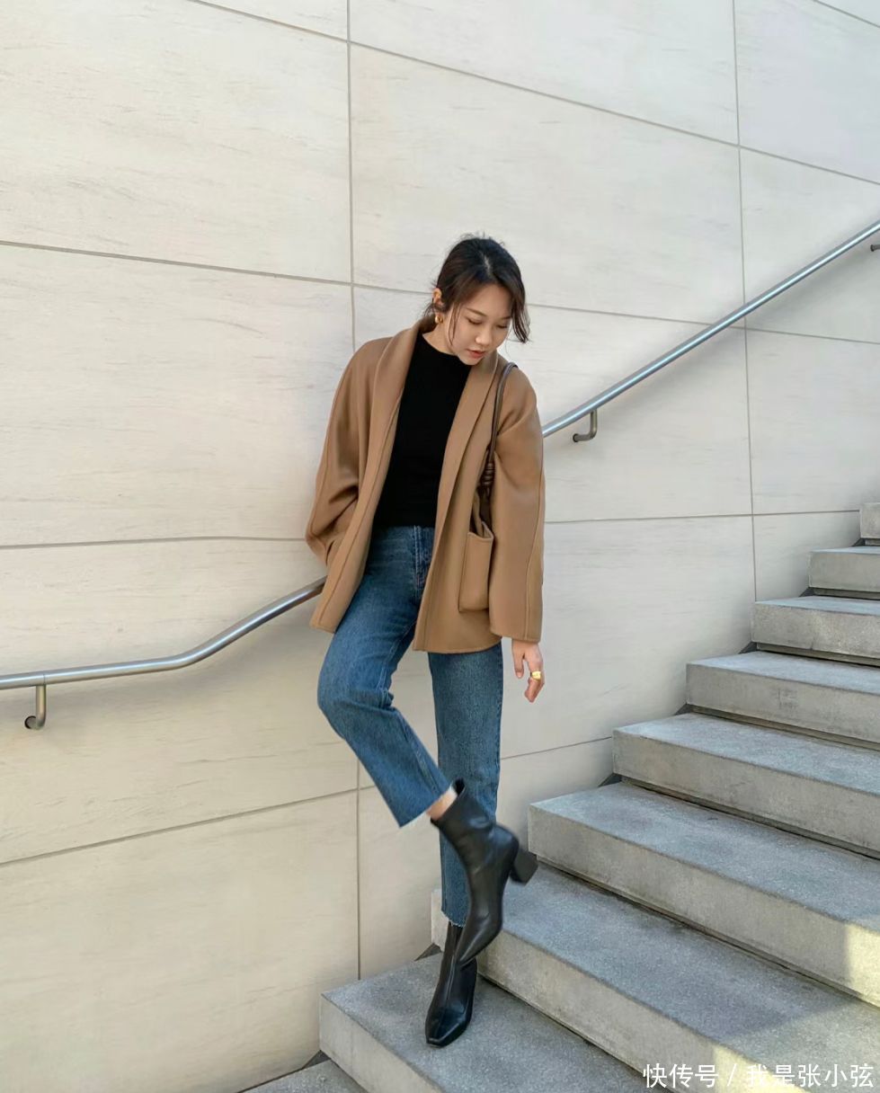 建议大龄女人可以多尝试一下靴子,尤其是在寒冷的冬天,就算是搭配一双加绒的短靴,也完全不会穿出笨重的感觉。像这种刚好遮住脚踝的低跟踝靴,适配度就非常高,不管是配羽绒服还是大衣,都能够穿出特别轻盈的感觉。