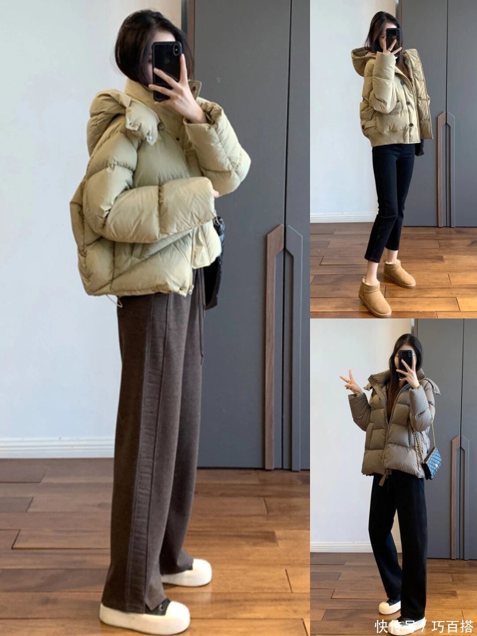 另一类是宽松短款羽绒服,利用蓬松度营造出上松下紧的视觉效果,减龄效果明显,刚好遮住屁股的衣身长度,不打压身高也会暴露身形。