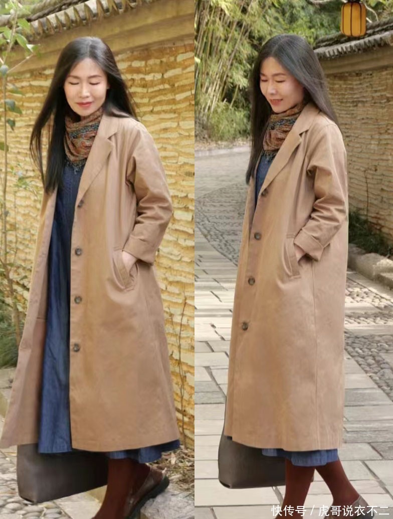 比方说图中这位博主采用的就是长风衣配牛仔裤的穿法,相当的拉风时髦,用来营造出酷帅感穿搭,也是非常轻而易举的。